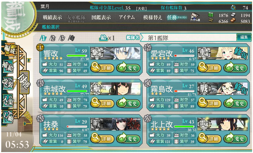 衣笠さんももう少しで改二にできるし、大井さんも順調に育ってるし、提督業は順調でち。
